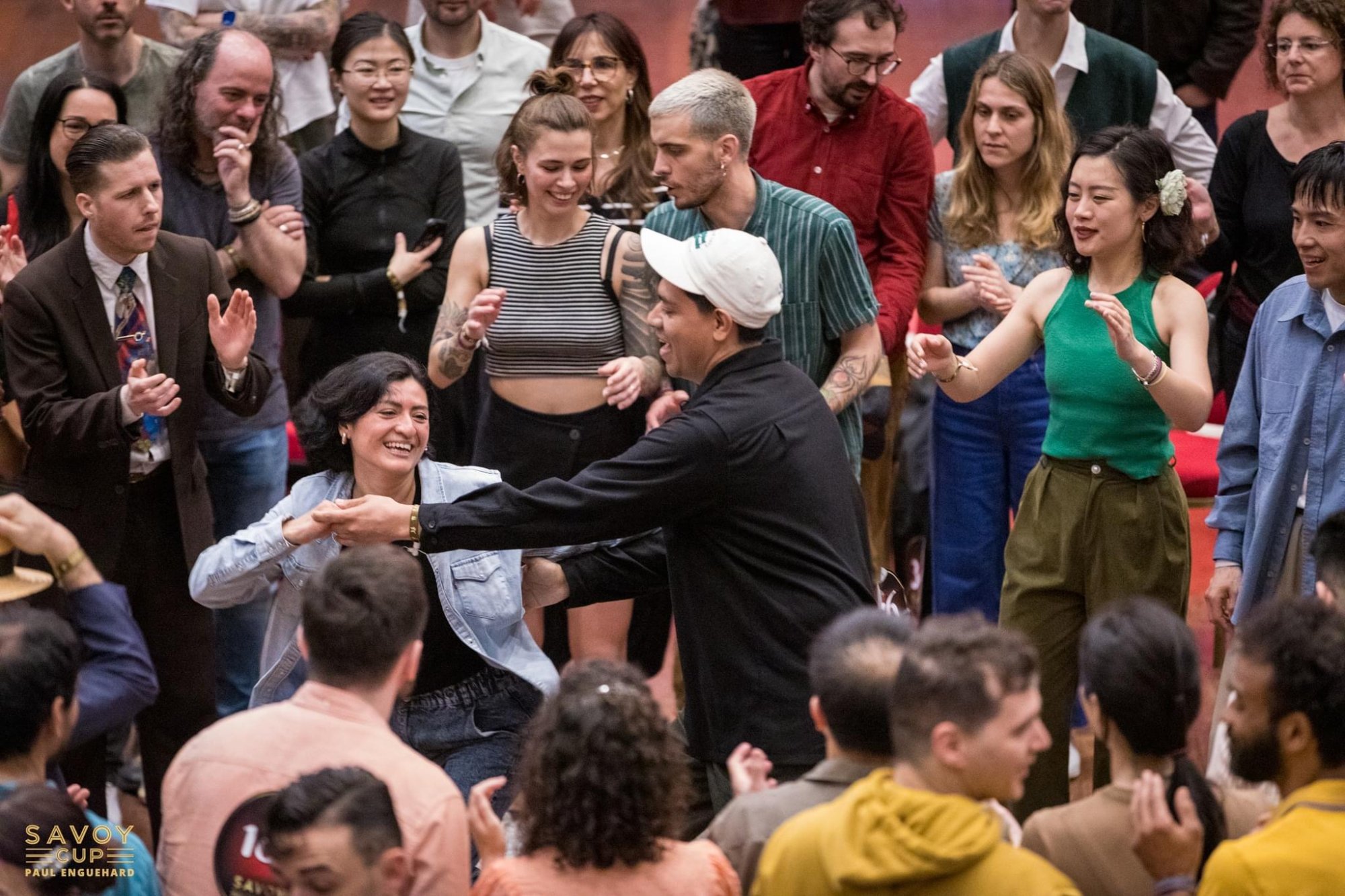 Solo para principiantes. No importa con quién llegues, importa cómo bailas. Te inscribes solo/a y en cada ronda te asignan una pareja diferente al azar. La conexión, adaptabilidad y musicalidad son lo que cuenta. Puedes inscribirte a esta y otras categorías.